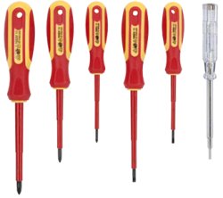 Isolati fino a 1000 V. Acciaio Cromo-Vanadio. Punta magnetica. Impugnatura in bimateriale antiscivolo.