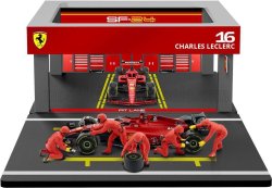 1/43 ferrari f1 sf-24 diorama garage pit-stop #16 c.leclerc with crew figure and accessories
