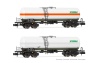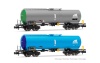 ARNOLD HN6537ERR, 2-unit set 4-axle tank wagons, 1x green/grey + 1 x light blue/dark blue livery, period VI