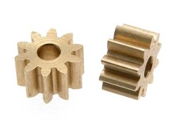 Brass pinion 10 tooth m50 for 2mm. motor axle. diam. 6.35mm